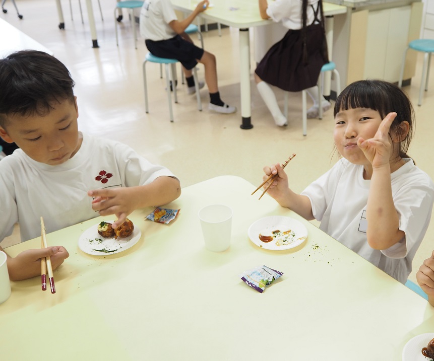 おやつの時間に、みんなでたこやき屋さんに変身しました!